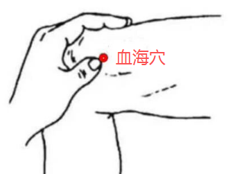 血海穴:膝盖髌骨内上方约三横指处。对风热、血虚引起的皮肤瘙痒有调理作用。