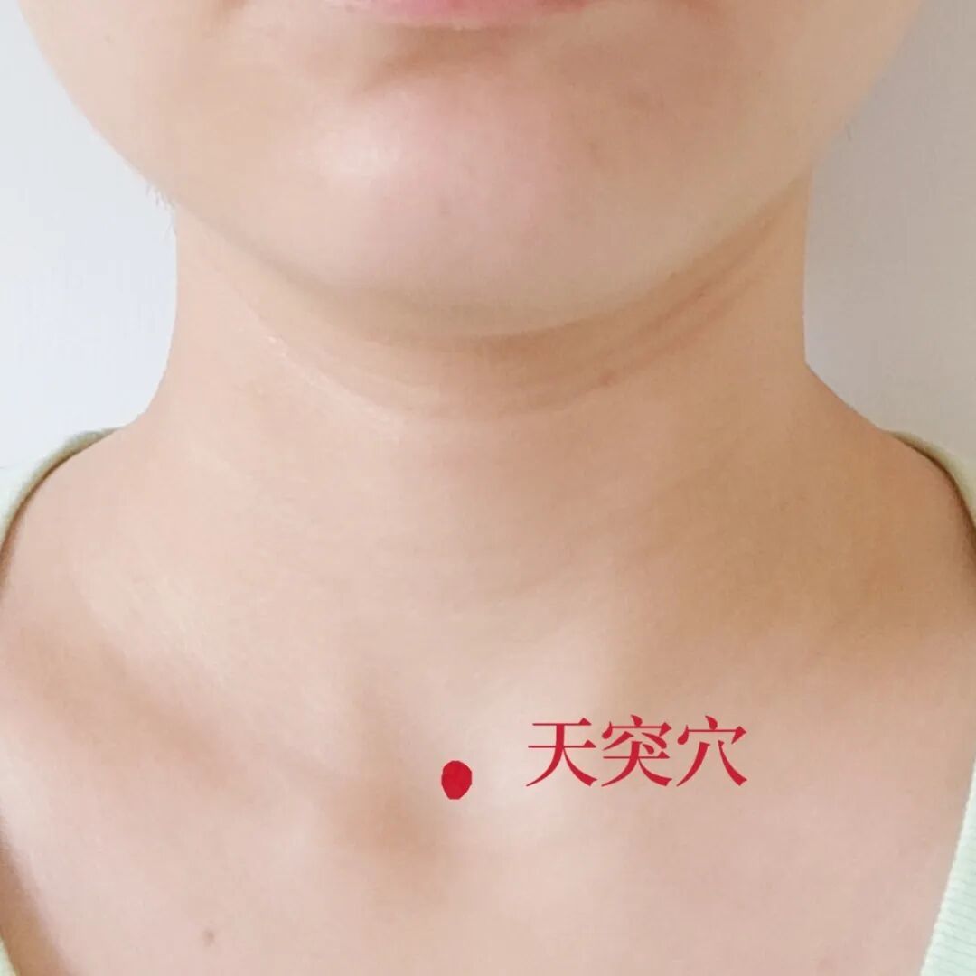 天突穴:颈部正中,胸骨上窝中央。疏通颈部经络,理气化痰。