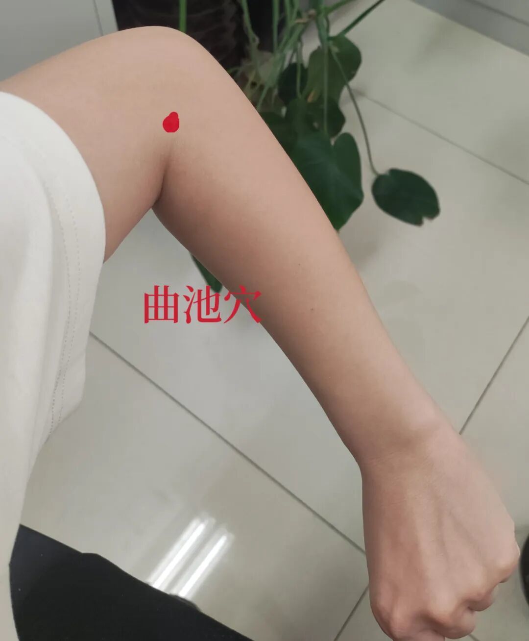 曲池穴:屈肘成直角,肘横纹外侧端尽头。强力按压有酸麻感,能清热降压,对上肢和头面部的热证有很好的调节作用。